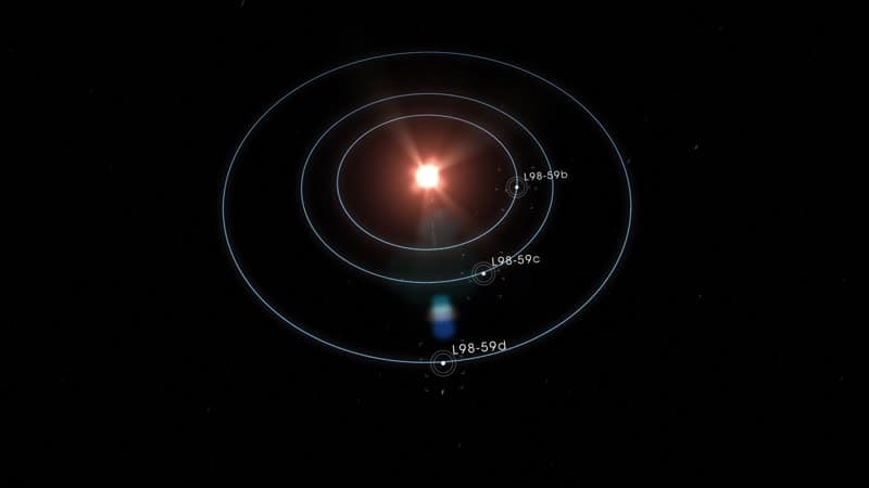 NASA’s Transiting Exoplanet Survey Satellite (TESS) has discovered a world between the sizes of Mars and Earth orbiting a bright, cool, nearby star. The planet, called L 98-59b, marks the smallest found by TESS yet. Two other worlds orbit the same star. While all three planets’ sizes are known, further study with other telescopes will be needed to determine if they have atmospheres and, if so, which gases are present. The L 98-59 worlds nearly double the number of small exoplanets — that is, planets beyond our solar system — that have the best potential for this kind of follow-up. L 98-59b is around 80% Earth’s size and about 10% smaller than the previous record holder discovered by TESS. Its host star, L 98-59, is an M dwarf about one-third the mass of the Sun and lies about 35 light-years away in the southern constellation Volans. While L 98-59b is a record for TESS, even smaller planets have been discovered in data collected by NASA’s Kepler satellite, including Kepler-37b, which is only 20% larger than the Moon. The two other worlds in the system, L 98-59c and L 98-59d, are respectively around 1.4 and 1.6 times Earth’s size. All three were discovered by TESS using transits, periodic dips in the star’s brightness caused when each planet passes in front of it.